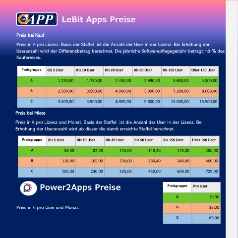 Preis in € pro Lizenz. Basis der Staffel ist die Anzahl der User in der Lizenz. Bei Erhöhung der